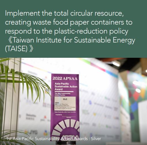 To tackle the problem of waste food paper container disposal, we also believe that it is responsible for papermakers' responsibility to engage in recycling waste food paper containers. Therefore, we made advanced deployment by investing an "efficient film laminated paper treatment system" in 2018 to become the first company completely recycling food paper containers. In same year, started the "upgrading of recovered paper supply chain plan" and deepen the benefits of the circular economy. We supported over 167 recovered paper suppliers in Taiwan to upgrade. Reduced paper sludge by 50% and decreased the energy consumption by 10% by implementing source identification, and enhanced the profit and competitiveness of recovered paper supply chain. The plastic laminate is recycled into green fuel and eco-friendly building materials products. Pre-planned to help solve the growth of the takeout catering culture was driven by the epidemic and respond to the stop using plastic bottles policy in Taipei city in 2022 to realize benefits with a creative multi-win sustainability business model. With the goal of continuously deepening the recycling efficiency, the recycled bleached pulp line of Tayuan Mill, which will operate in 2023H1.