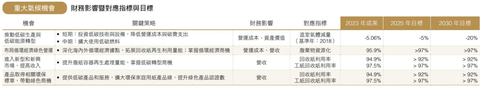 循環經濟是全球邁向低碳淨零的務實作法。本公司將 氣候變遷風險同時視為機會,以「S.M.A.R.T. 低碳智 紙」為核心,積極布局海內外循環經濟據點。致力透 入回收紙循環再生,聚焦「紙」自然為本解決方案, 並領先業界重視氣候永續治理,提升氣候營運韌性。