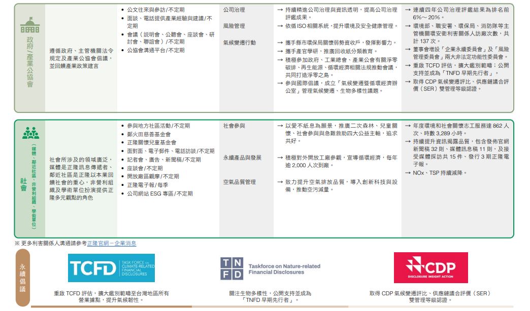 "重視所有管道的互動溝通,有助於正隆更清楚理解利害關係人的 合理期望,也讓我們回應社會需求與持續精進成長。"