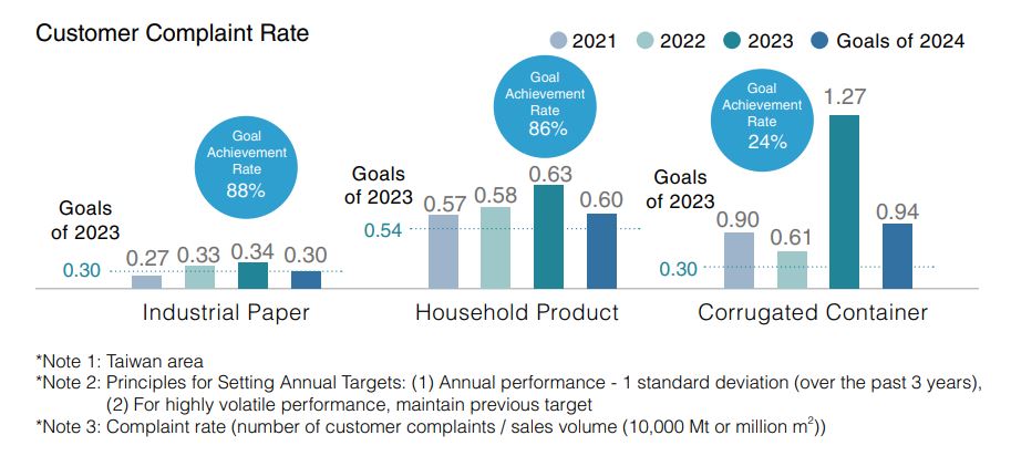 Regarding complaint rates, in comparison to the 2023 targets, the achievement rates of complaint rates for various products were 88% for industrial paper, 86% for household paper, and 24% for paper products, with an average achievement rate of 51%.