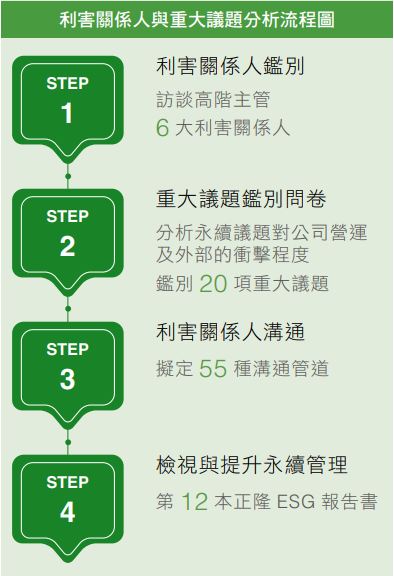 "重視所有管道的互動溝通,有助於正隆更清楚理解利害關係人的 合理期望,也讓我們回應社會需求與持續精進成長。"